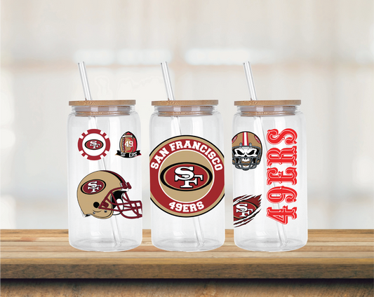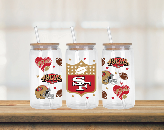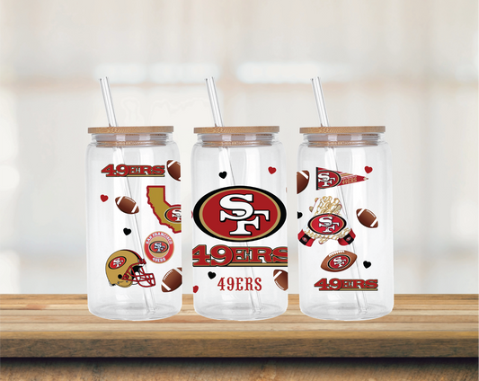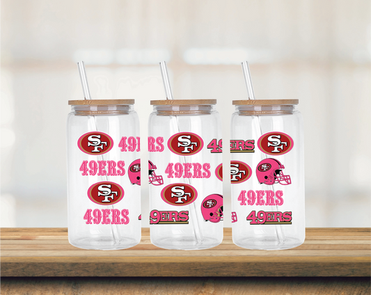 SF 49ers Pink 16oz DTF Glass Can Wrap