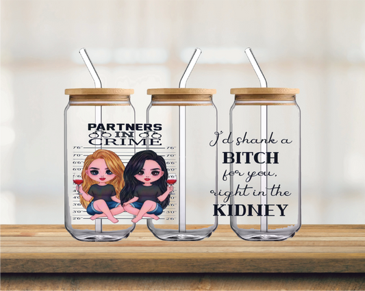 Partners In Crime | UV DTF 16oz Glass Can Wrap