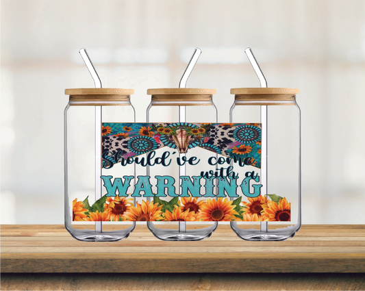 Should've come with a WARNING | UV DTF 16oz Glass Can Wrap