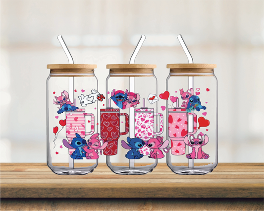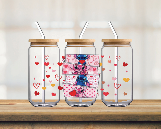 Stitch w/ Hearts | UV DTF 16oz Glass Can Wrap