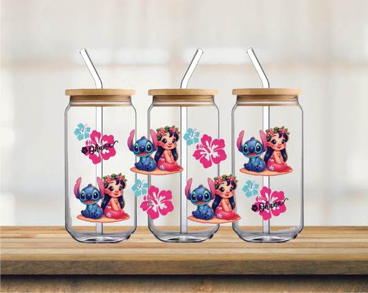 Stitch Ohana | UV DTF 16oz Glass Can Wrap