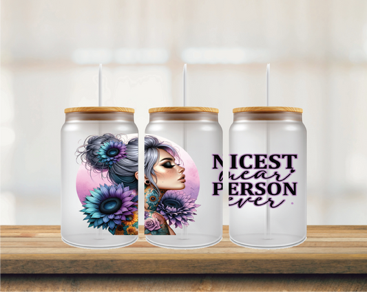Nicest Mean Person Ever 16oz Glass Can Wrap