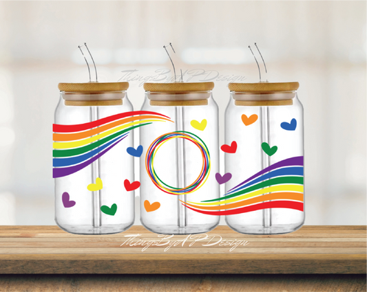 Rainbow w/ Hearts 16oz Glass Can Wrap