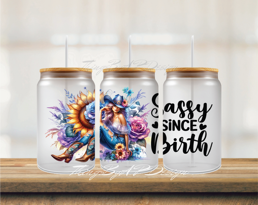 Sassy Since Birth w/ flowers 16oz Glass Can Wrap