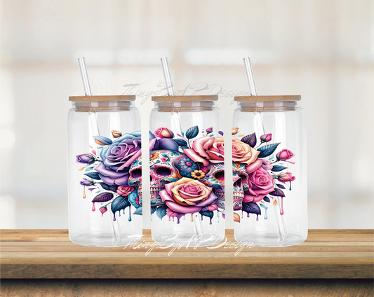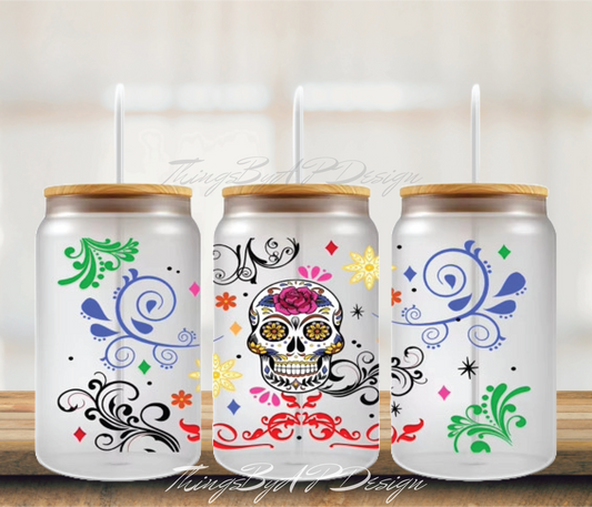 Skull & Swirls/Blue 16oz Glass Can Wrap