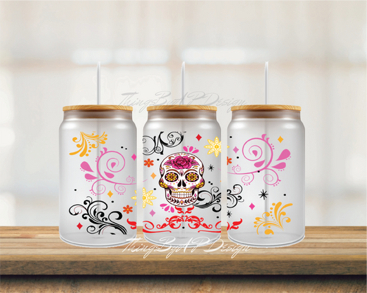 Skull & Swirls/Pink 16oz Glass Can Wrap