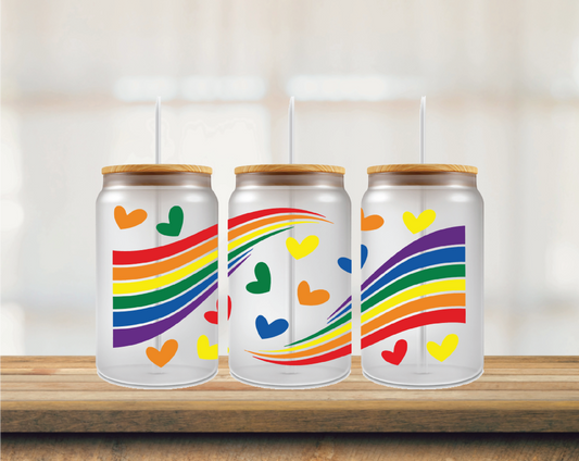 Rainbow w/ Hearts 16oz DTF Glass Can Wrap